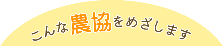 私たちは、大地が植物をやさしく育てるような思いやりをもち、地域の皆様に愛され、信頼される。今まで培ってきた協同の心を忘れない。 …こんな農協を目指します。