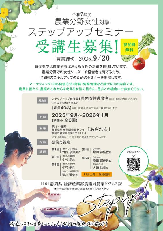 - 令和7年度 農業分野女性ステップアップセミナー 受講者募集について