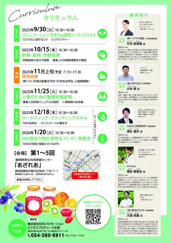 静岡県では、農業分野における女性の活躍を応援しています。農業分野での女性リーダーや経営者を育てるため、全6回のスキルアップセミナーを開催します。